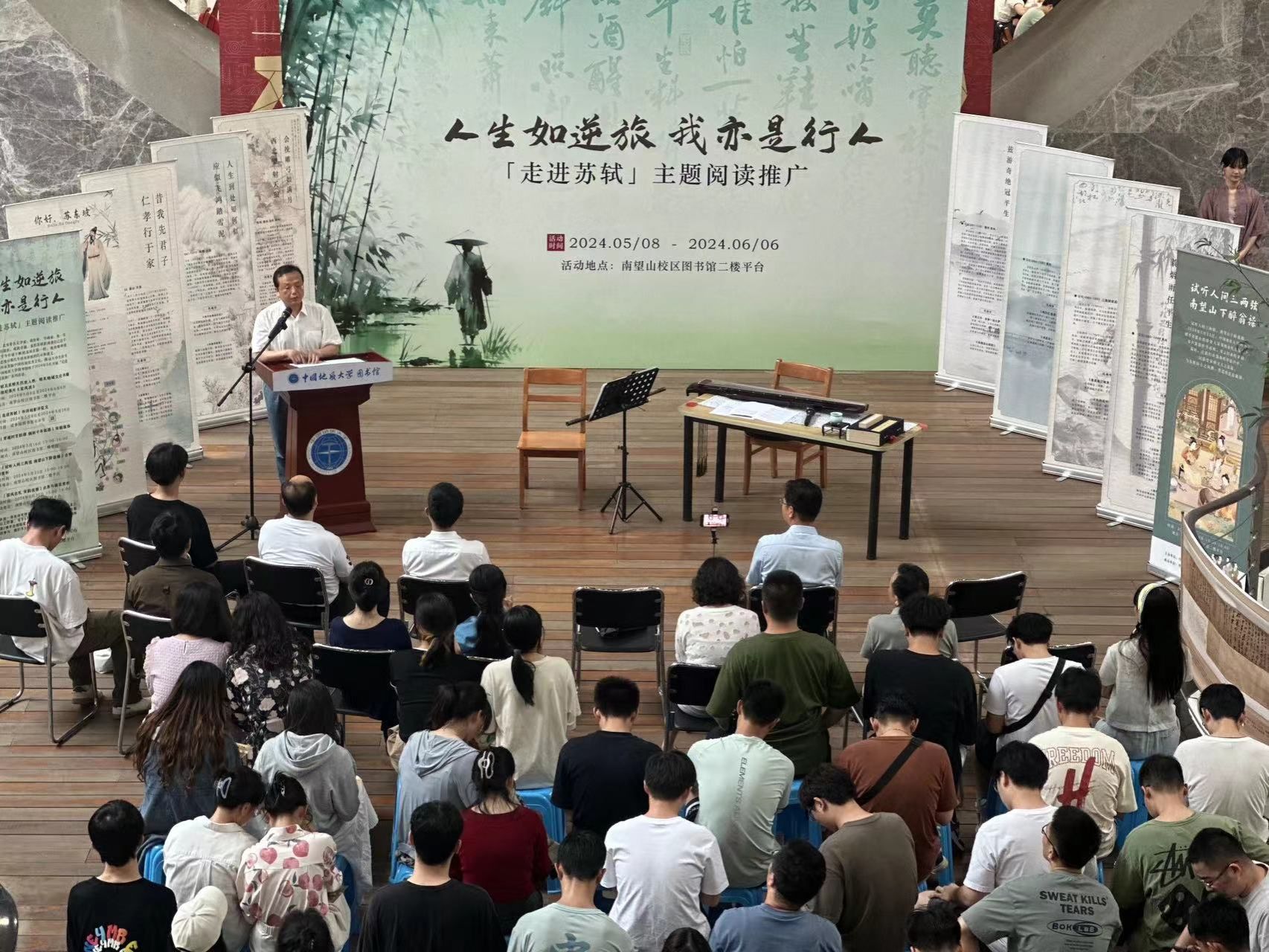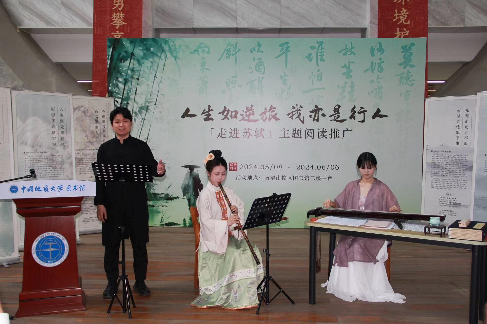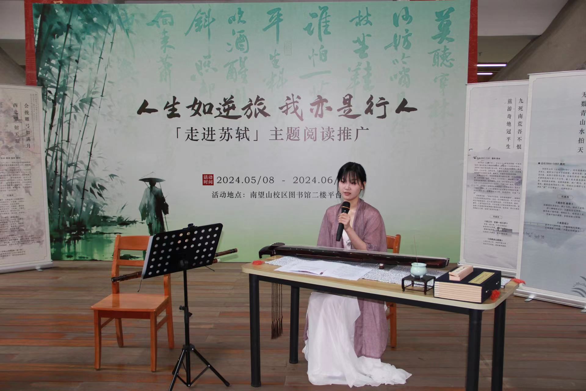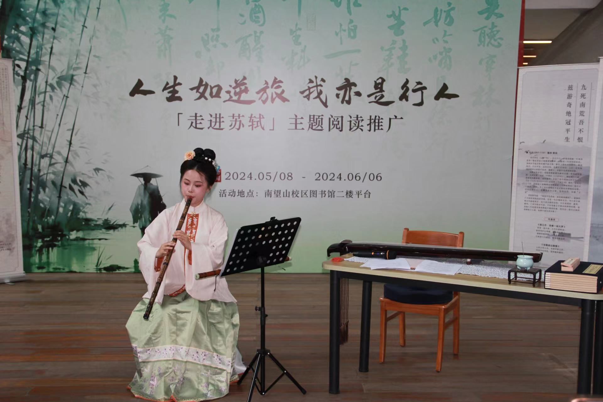试听人间三两弦,南望山下醉翁操。5月23日,“人生如逆旅,我亦是行人——走进苏轼”主题阅读推广系列活动之琴箫赏析活动在南望山图书馆二楼举行。图书档案与文博部部长帅斌、党委书记邓云涛,副部长张峰、明厚利,党委宣传部副部长吴仁喜,校团委副书记穆雨,与现场师生一起领略了中华古典音乐的魅力。