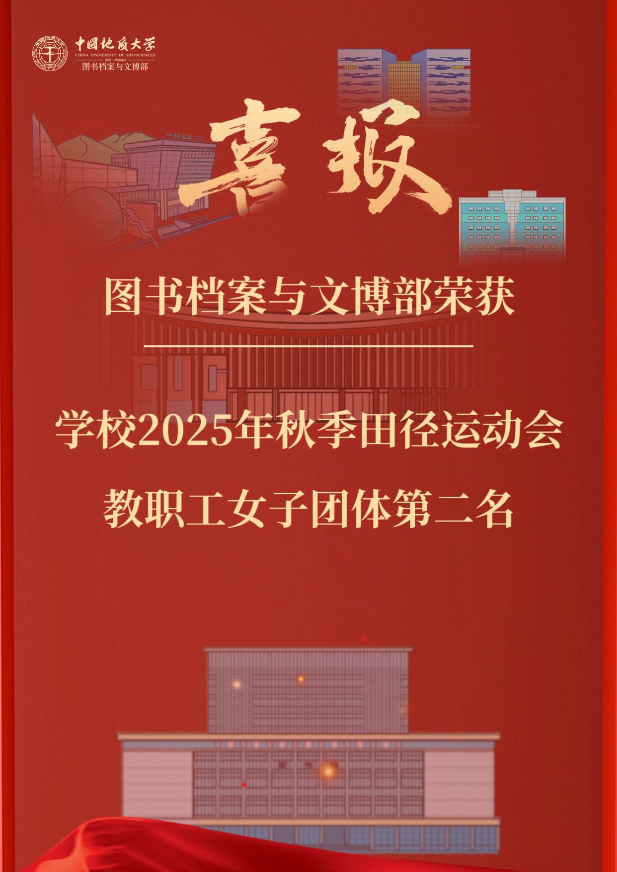 喜报:图书档案与文博部荣获学校2025年秋季田径运动会教职工女子团体第二名