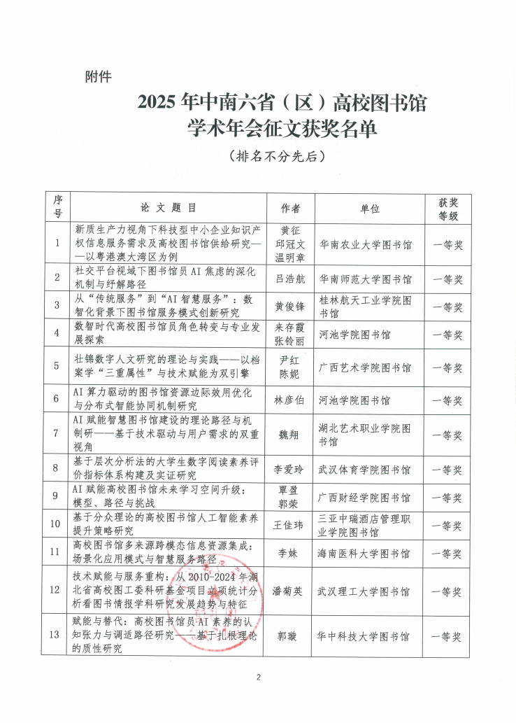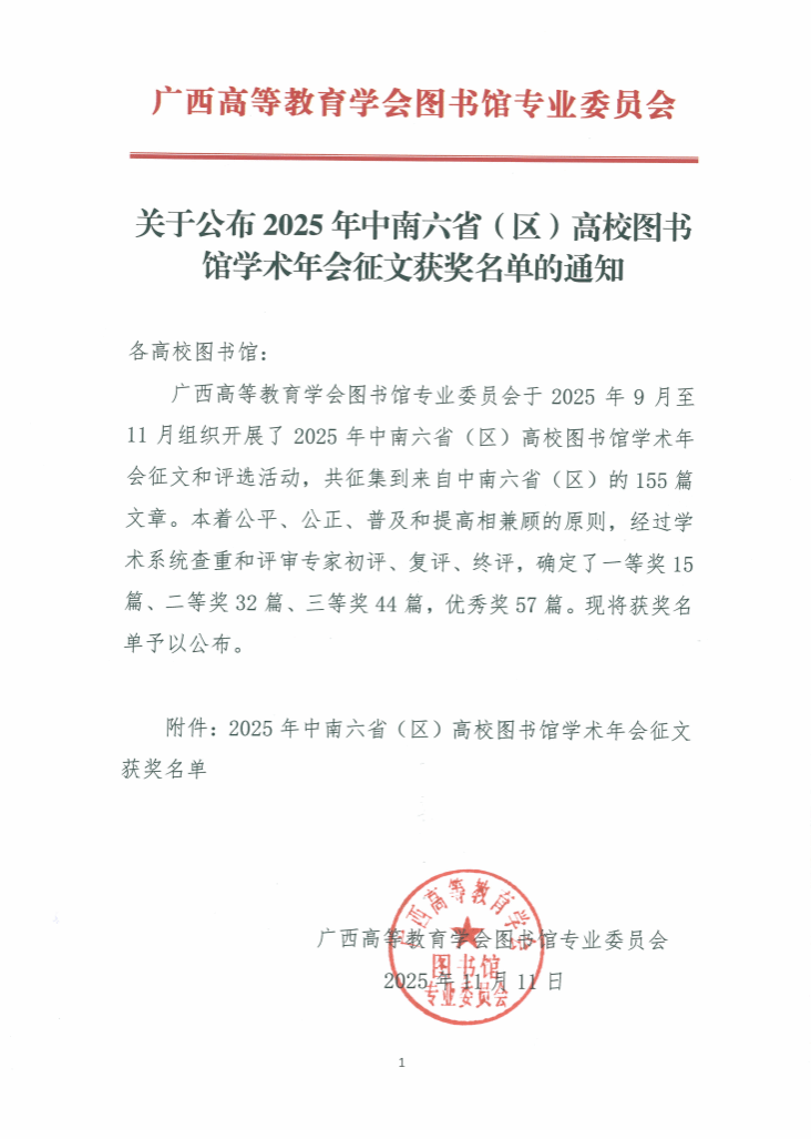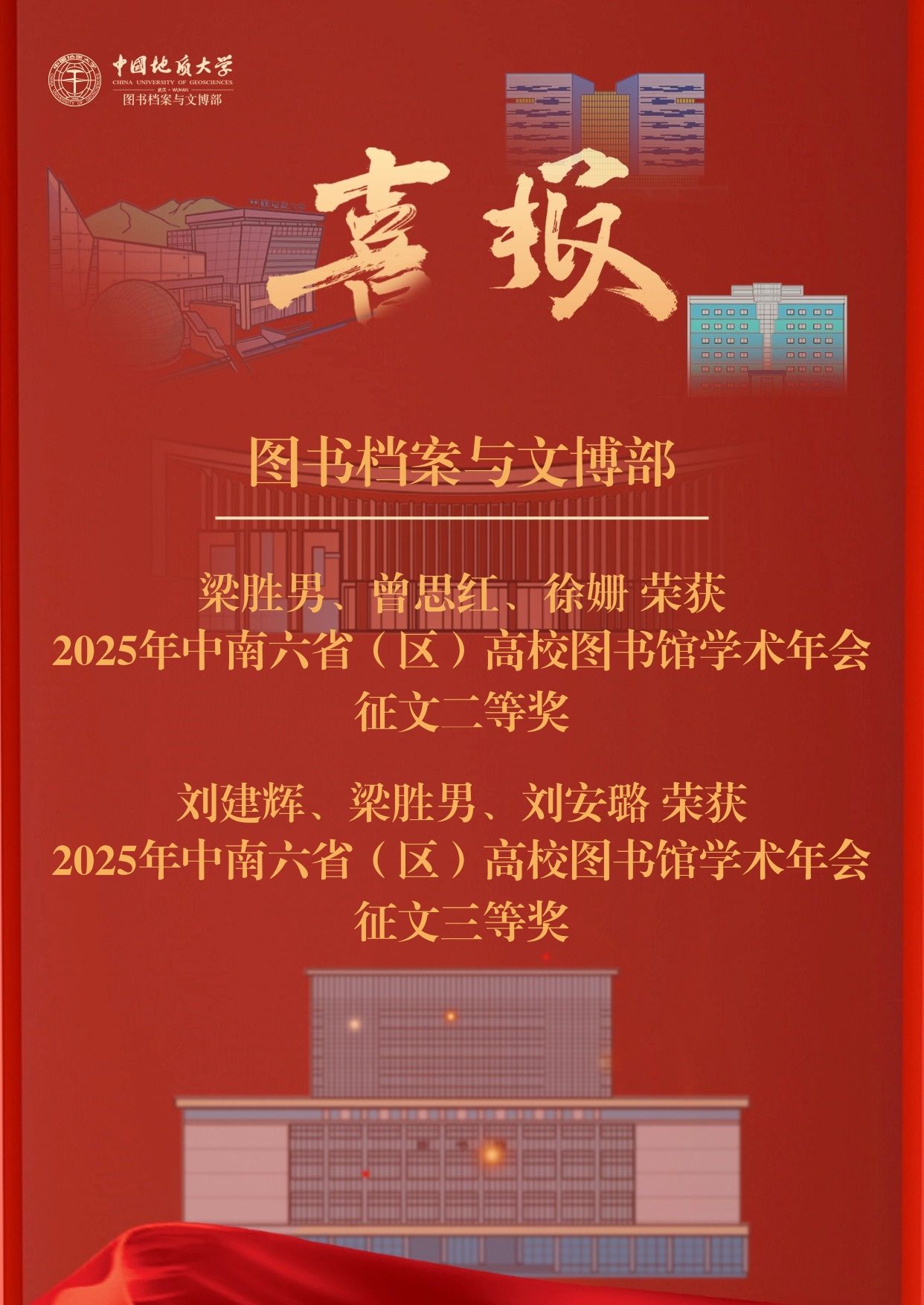 喜报:我部员工荣获2025年中南六省(区)高校图书馆学术年会征文二等奖和三等奖
