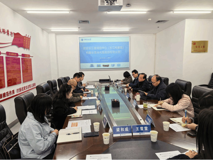 座谈会上,双方还围绕跨单位科研合作与资源共享等核心问题展开务实交流。双方一致认为,地大与长江水利委员会学缘亲密、学科同质、合作基础厚实且领域广阔,在国家大力推进长江经济带建设和文化建设、加快行业数智化转型的时代背景下,长江委网信中心(长江档案馆)与地大图书档案文博部具有资源管理的互补性、编研展示的互助性和合作空间的深广同向性。双方约定将建立长期稳定的共享共建合作交流机制,实现优势互补、互利共赢。