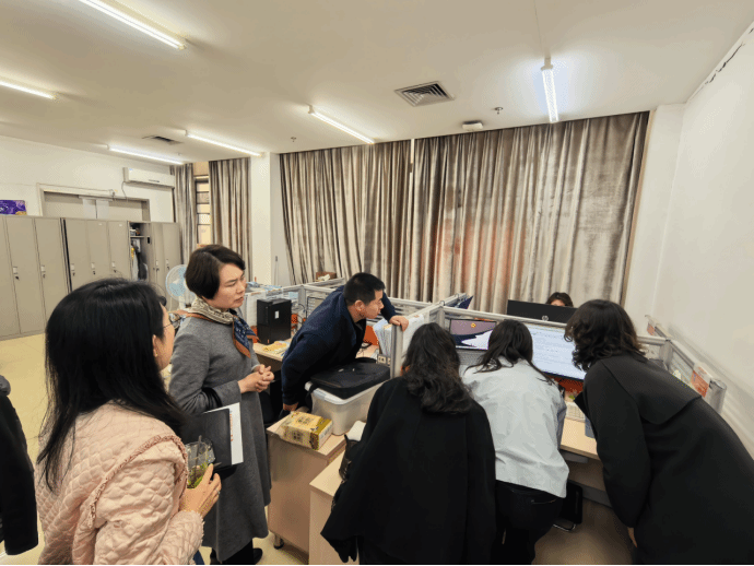 座谈会后,孙忠华处长一行在帅斌部长及相关负责人的陪同下,实地参观了图书馆并近距离观看了图书管理系统的演示,并对我部信息化工作给予了高度评价。