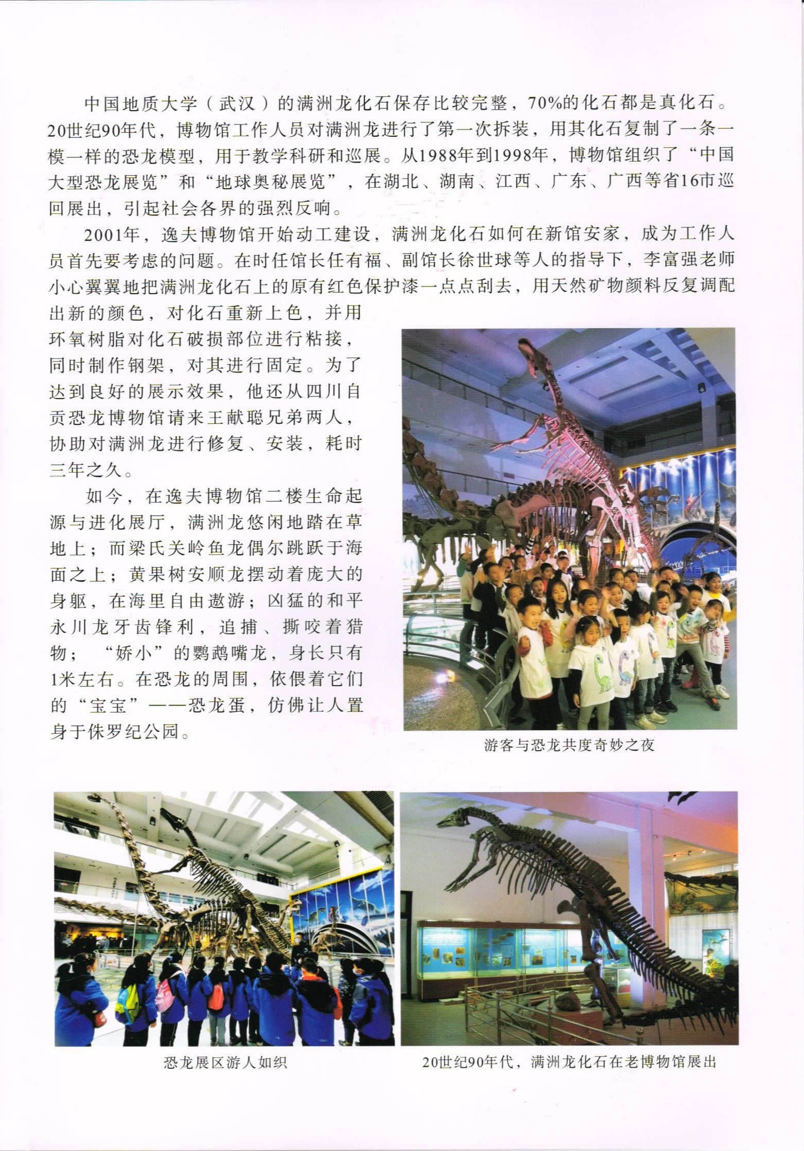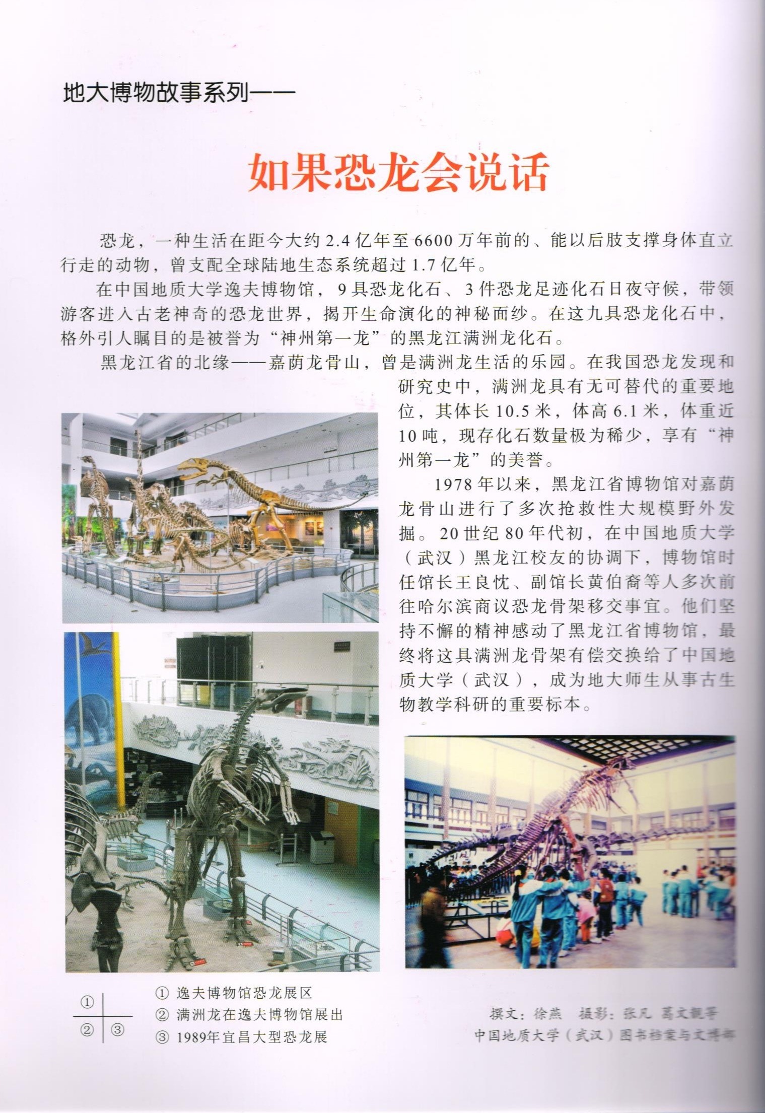 中国地质大学(武汉)的满洲龙化石保存比较完整,70%的化石都是真化石,20世纪90年代,博物馆工作人员对满洲龙进行了第一次拆装,用其化石复制了一条一模一样的恐龙模型,用于教学科研和巡展。从1988年到1998年,博物馆组织“中国大型恐龙展览”和“地球奥秘展览”,在湖北、湖南、江西、广东、广西等省16市巡回展出,引起社会各界的强烈反响。