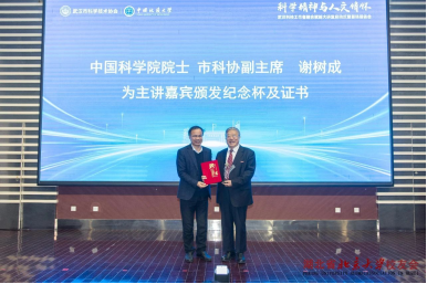 中国科学院院士、武汉市科协副主席谢树成为首场报告会主讲嘉宾程郁缀先生颁发纪念杯和证书。