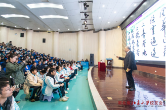 “清风明月,道德文章。风华正茂,任重道远。上善若水,上德若谷。水浅能容月,山高不碍云。”讲座伊始,程郁缀为与会嘉宾和莘莘学子们送上了美好寄语。