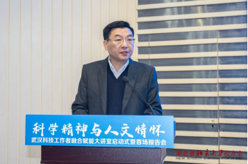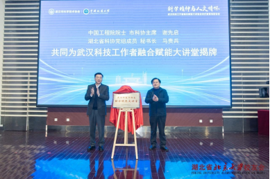启动式上,中国地质大学(武汉)党委书记黄晓玫致欢迎辞。中国工程院院士、武汉市科协主席谢先启与湖北省科协党组成员、秘书长马贵兵共同为武汉科技工作者融合赋能大讲堂揭牌。