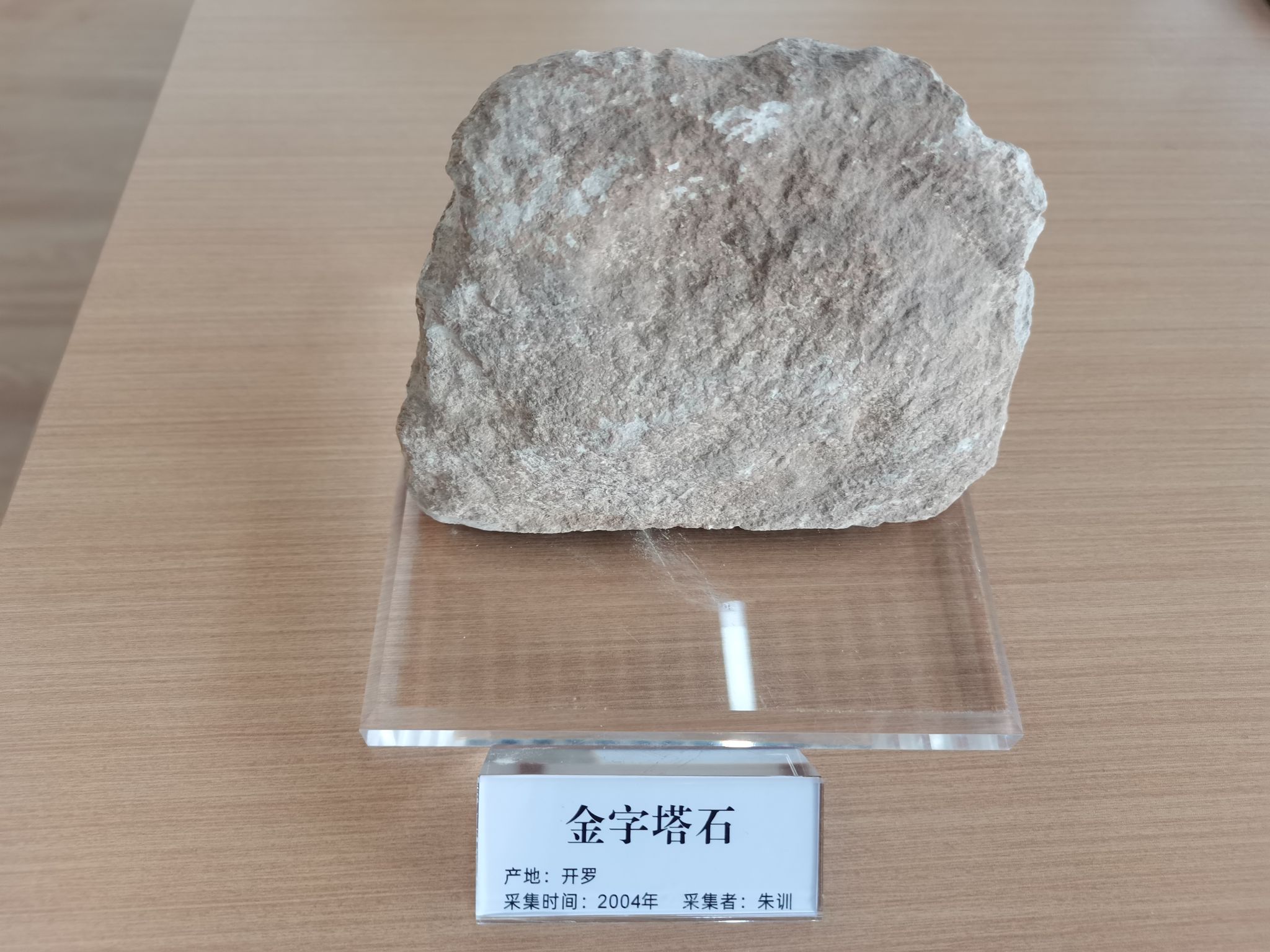 此次标本展共展出朱训不同时期在国内外采集、收藏的岩石和矿石标本63件。其中包括朱训20世纪50年代在苏联留学期间收藏的俄罗斯玛瑙、磁铁矿标本;1987年作为中国政府特使参加加纳国庆庆典期间,由加纳总统罗林斯赠送的加纳金矿标本;1997年在希腊爱琴海海边采集的河卵石;2004年在埃及开罗金字塔群附近采集的金字塔石以及采自新疆可可托海的稀有金属标本等。