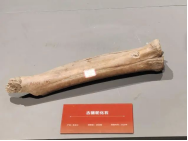 在逸夫博物馆四楼,一种远古骆驼的跖骨化石标本静静地躺在展示柜里,向人们诉说着生物演化的故事。原来,这种远古骆驼叫诺氏驼,来自黑龙江青冈县德胜乡,是骆驼属中体型最大的成员,与现生双峰驼有着交叉亲缘关系,早已因“挑食”在末次盛冰期走向灭绝。