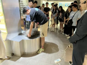 “你们知道这块火山弹的重量有多少斤吗?大家都来试一试,看看能不能搬得动。”5月下旬,工程学院葛云峰教授带领《岩土测试技术》《地质工程新技术》《非杰出智能测试》3个专业课近50名学生,来到逸夫博物馆三楼岩石矿物厅开展现场教学,对馆藏最重的一块火山弹进行岩石学分析。