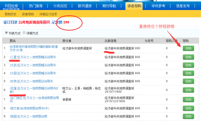 第六个读者荐购,这个利害了,大家都是学校的主人,您的图书馆您做主,怎么做主咧?您在这里面可以动动小手,点击荐购,吼吼,只要翻牌了,图书馆就为您花钱哦,不要浪费机会,么么哒
