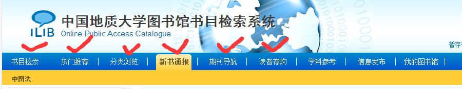 在图书馆的主页上,点击“检索”或者“我的图书馆”都会看到如下蓝色的一排标签栏,那里面是图书馆馆藏纸质文献的各种展示,小伙伴们注意到了吗?我们挨个说一遍哈,“书目检索”,这个比较简单,会用图书馆或者去过图书馆的童鞋都知道,可以检索图书馆的纸质图书和期刊;“热门推荐”,是管理系统根据借阅排行和检索排行给大家做的一个自动推荐;第三个“分类浏览”,这个稍微有点专业哈,涉及到图书馆管理图书使用的一个规则,就是《中国图书馆分类法》,在这个栏目里,按分类介绍了图书的存在感,用字母+数字给每种书一个编号,您按编号去找,说不定找不到,但是要耐心啦