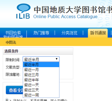 接下来是第四个按钮“新书通报”,这个比较贴心了,这是图书馆每天处理的新书情况,也就是说同学们可以在这个栏目里看到最新到馆的新书啦;